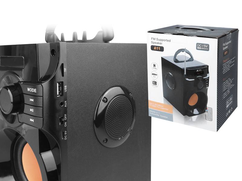 Głośnik Retro A11, 10 W, Bluetooth, radio FM, USB, Micro SD, AUX, pilot, wbudowany akumulator.