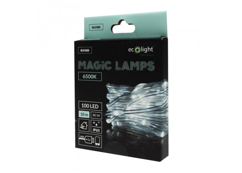 MAGICZNE LAMPKI ZIMNE B. 6500K 100-LED 10m USB DC5V IP65 STEROWANE APLIK.