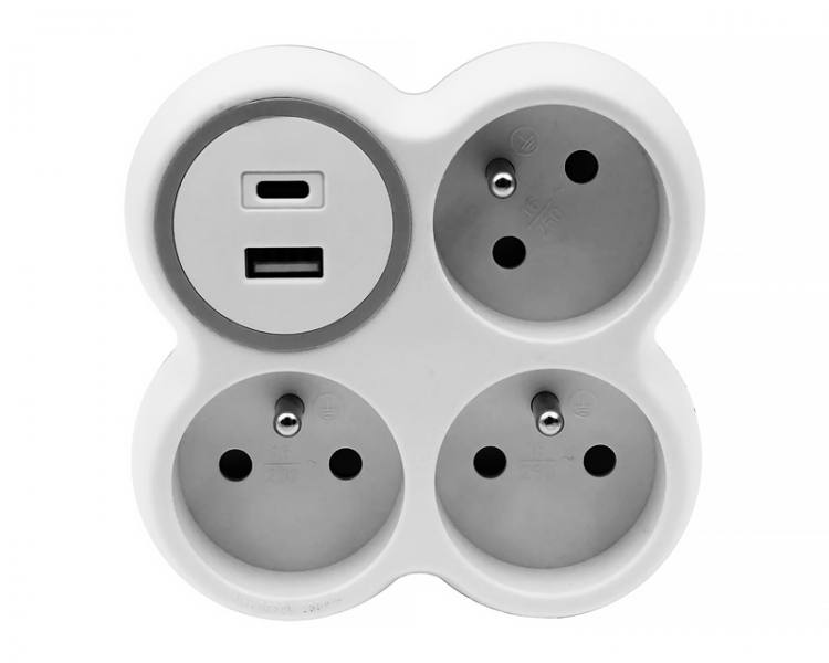 Rozgałęźnik trzykrotny, 3x gniazda wtyczkowe z uziemieniem, 1xgniazdo USB A, 1xgniazdo USB C