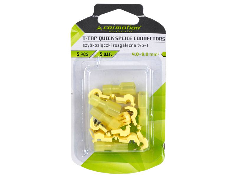Szybkozłączki zaciskane rozgałęźne typ-T, żółte, 4.0-6.0 mm, 15 A max, op. 5szt.