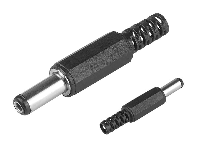 Wtyk DC montowany na przewód do lutowania. Obudowa wykonana z tworzywa sztucznego.