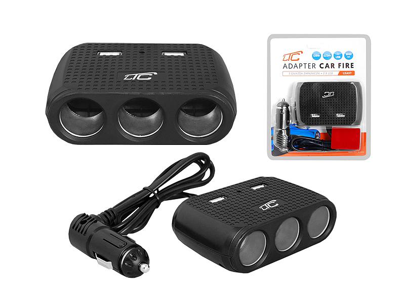 Adapter CAR FIRE LTC 3 gniazda 120W/2xUSB 1A/12/24V AS7C czarny