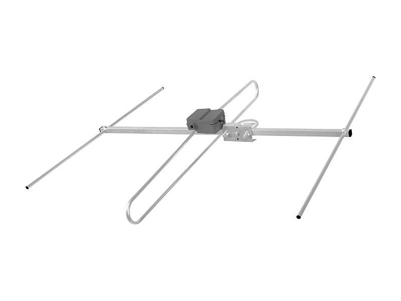 Profesjonalna trzy elementowa antena przeznaczona do odbioru cyfrowych i analogowych sygnałów telewizyjnych DVB-T oraz radiowych DAB nadawanych w kanałach 1-12. Dzięki kierunkowej charakterystyce i zyskowi równemu około 10 dBi, antena po zainstalowaniu symetryzatora doskonale sprawdza się na terenach miast, w których znajdują się nadajniki DVB-T oraz cyfrowego radia DAB, dla wzmocnienia sygnału można zainstalować także wzmacniacz dopuszkowy wraz z zasilaczem, konstrukcja anteny umożliwia swobodną zmianę polaryzacji odbioru poziomą i pionową.