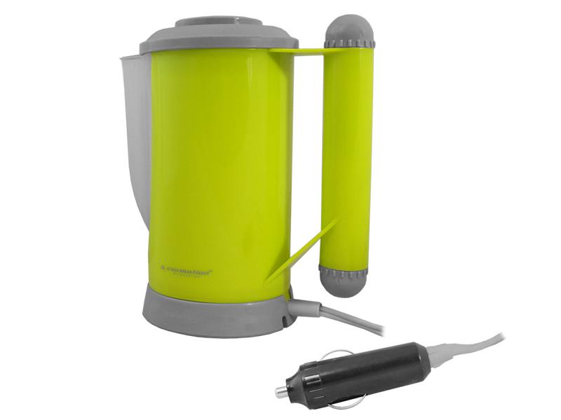 Nadaje się do samochodów ciężarowych, łodzi, campingów i innych pojazdów z zasilaniem 12V. Idealny do przygotowania gorącej wody, kawy, herbaty, zupy, przekąsek i podgrzewania butelek dla niemowląt. Zawiera widelec i łyżeczkę (w uchwycie), 2 filiżanki, filtr siatkowy i uchwyt mocujący. Wlej czystej wody do czajnika tak, aby jej poziom znajdował się między wskazaniami MIN i MAX, następnie podłącz do bezpośrednio do gniazdka 12V.