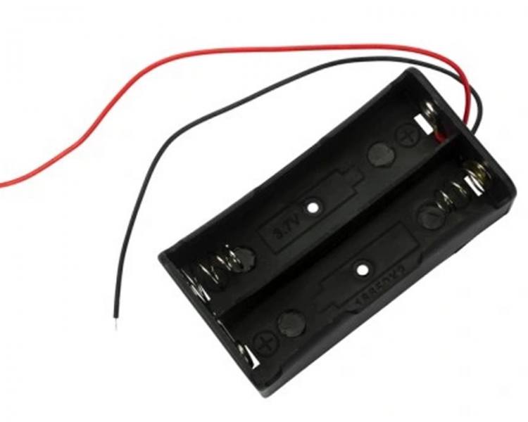 Plastikowy koszyk w kolorze czarnym, mieści dwa akumulatoyr typu 18650. Posiada dwa wyprowadzone przewody. Montaż i demontaż ogniw jest łatwy dzięki zastosowaniu sprężynek. Koszyk umożliwia bezproblemowe pobieranie energii elektrycznej z ogniw. Wymiary koszyka wynoszą 75,8x41x 19,5mm. Połączenia w koszyku są szeregowe.| Pojemność | 2x 18650 |
