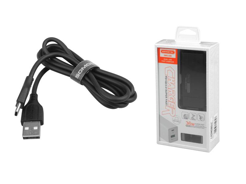 ŁADOWARKA SIECIOWA SOMOSTEL 36W+KABEL TYP-C CZARNA POWER DELIVERY SMS-A80 PD
