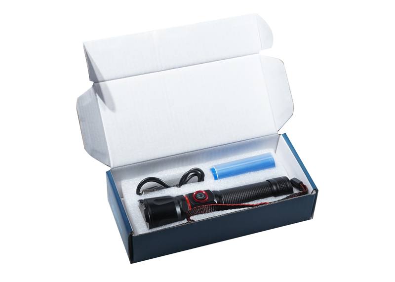 Wydajna latarka wyposażona w żarówkę P60 o mocy 800 lumenów oraz COB o mocy 300 lumenów, z trzema trybami świecenia i funkcją zoom. Zasilana baterią litowo-jonową o pojemności 2200 mAh, ładowaną do pełna w 4 godziny.| Żarówki | COB: P60 |