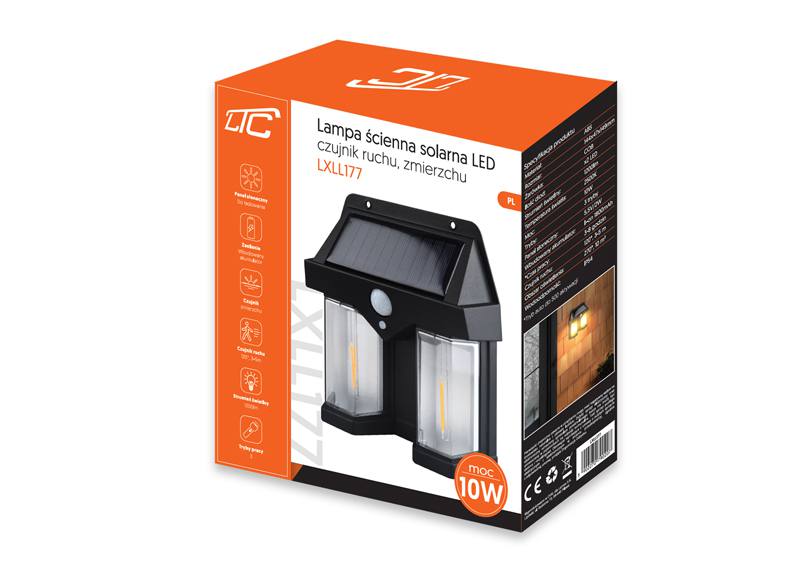 LTC Lampa ścienna solarna LED COB 10W 1200lm,czujnik ruchu,zmierzchu,akumul.1800mAh IP54 (ABS)