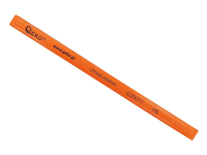 Ołówek stolarski o wkładzie grafitowym o twardości HB. Długość całkowita 245 mm. Sprzedawany w blistrach po 12 sztuk.