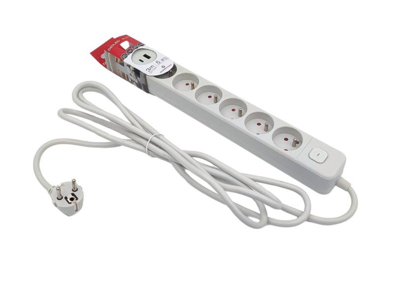 Sześć gniazd Z/U (z uziemieniem) umożliwiają jednoczesne podłączenie kilku urządzeń, zapewniając im stabilną i bezpieczną pracę oraz ochronę przed przepięciami.Solidny przewód H05VV-F 3x1,5mm2