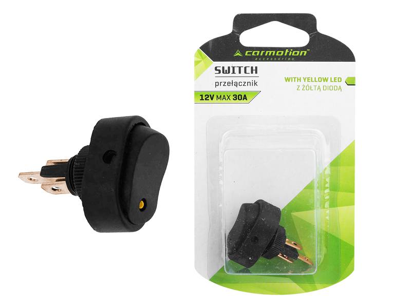 Przełącznik elektryczny DC z żółtą diodą, 12V max 30A.