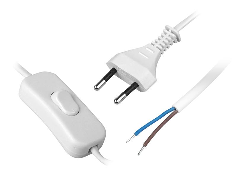 Przewód przyłączeniowy z wtyczką płaską 2x0,5 OMY z wyłącznikiem 2m. biały