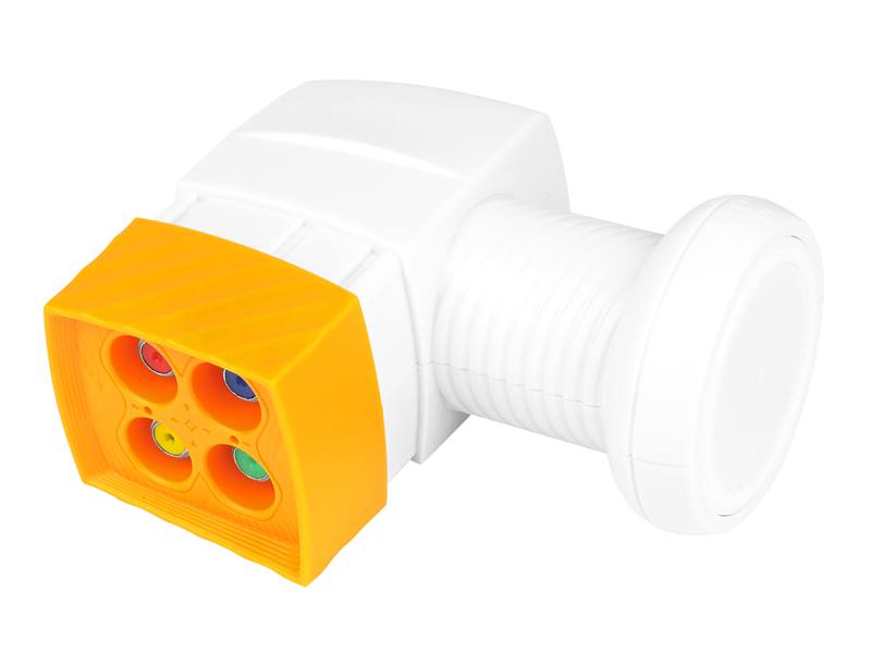 Wysokiej jakości konwerter satelitarny przeznaczony do użytku z anteną satelitarną wyposażoną w uniwersalny uchwyt konwertera 40mm. Konwerter współpracuje ze wszystkimi odbiornikami DVB-S/DVB-S2. Służy do odbioru programów satelitarnych nadawanych w paśmie Ku. Zalecany również do odbioru programów w jakości UHD/4K. Wyposażony w cztery wyjścia F do podłączenia dekoderów.