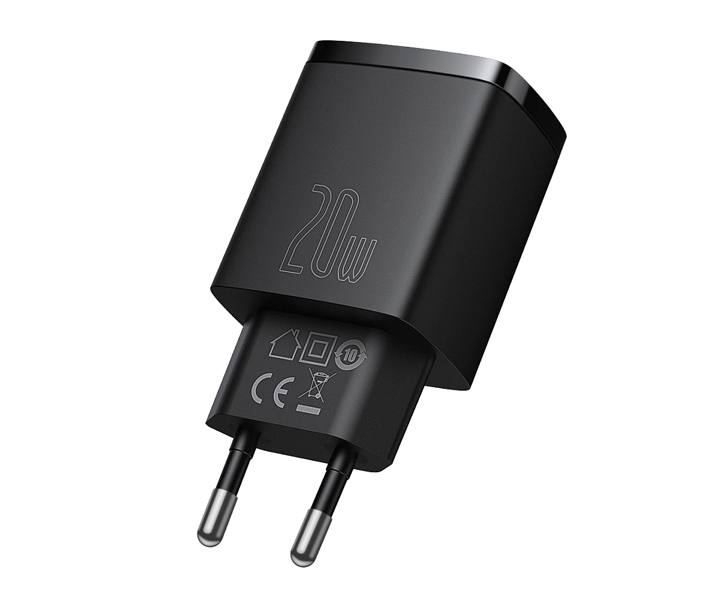 PS Ładowarka sieciowa Baseus Compact Quick Charger USB + USB-C QC 3.0 PD 3.0, 20W, czarna.