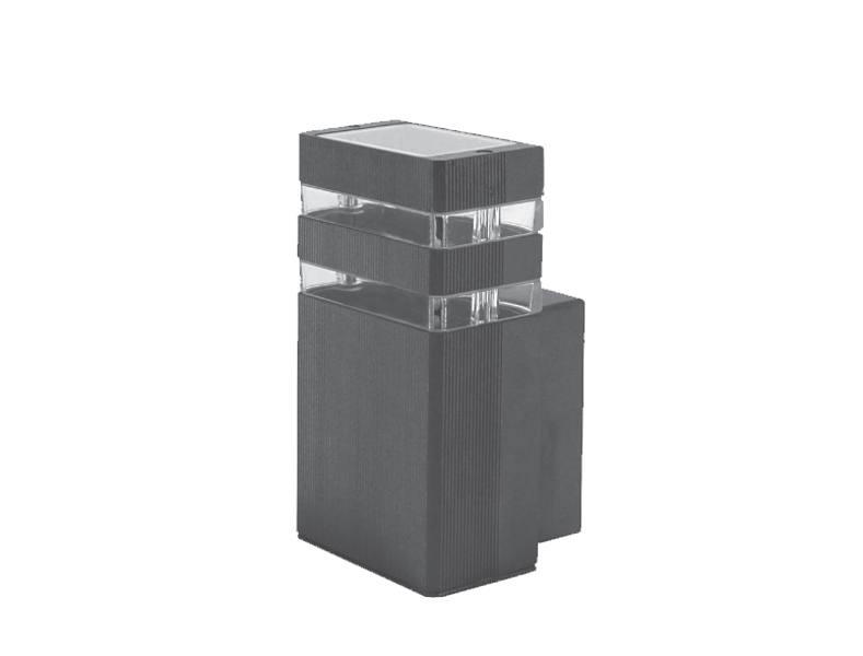 Kinkiet zewnętrzny wykonany z aluminium połączonego ze wstawkami z poliwęglanu oraz szkła. Praktyczne i eleganckie źródło światła. Oprawa wyposażona w gniazdo GU10. Klasa szczelności IP44 pozwala korzystać z lampy zarówno wewnątrz jak i na zewnątrz pomieszczeń.