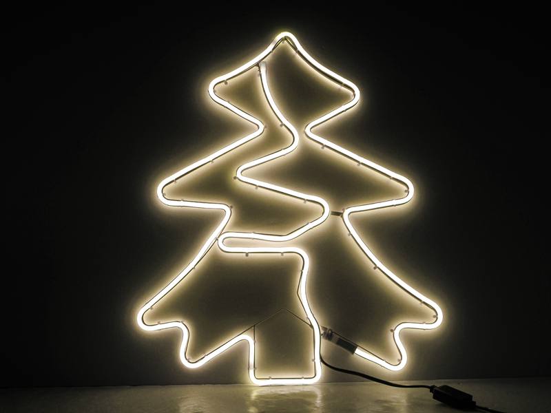 Ozdoba świąteczna w kształcie choinki wykonana w technologii NeonLED. Ozdoba wykonana jest z węża wypełnionego diodami LED i uformowanego do odpowiedniego kształtu. Całość oddaje równomierne i przyjemne dla oka światło. Urządzenie łączy w sobie zalety technologii LED i wizualną estetykę oświetleń neonowych.Produkt stanowi idealny dodatek do ozdób świątecznych. Bez problemu znajdzie swoje miejsce na podwórkach, zewnętrznych ścianach domu i balkonach. Bezproblemowo poradzi sobie również jako akcent ozdobny wewnątrz pomieszczeń. Ozdoba jest bardzo energooszczędna i wykonana z wysokiej jakości komponentów.