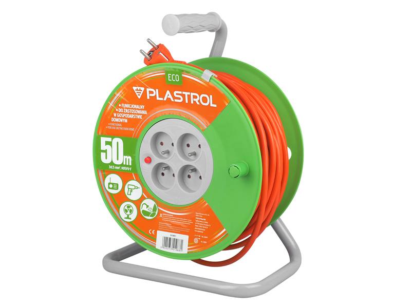 Przedłużacz bębnowy przeznaczony do stosowania głównie w gospodarstwach domowych. Zastosowany przewód H05VV-F. Przedłużacz posiada gumową uszczelkę gniazda, zalewaną wtyczke IP44, wyłącznik termiczny, obracający się uchwyt, stalowy stelaż oraz solidny ergonomiczny uchwyt.