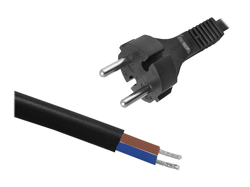 Wysokiej jakości, nierozbieralna wtyczka z przewodem okrągłym, przeznaczona do przyłączania odbiorników powszechnego użytku klasy I do sieci zasilającej poprzez gniazdo wtyczkowe np. pralki, lodówki, sprzęt komputerowy, przedłużacze, itp.