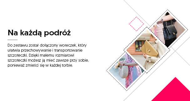 Szczoteczka jest niewielkich rozmiarów dzięki czemu z łatwością zmieści się do naszej torby czy też plecaka. Idealnie spisuje się nie tylko w domu ale także w innych miejscach.