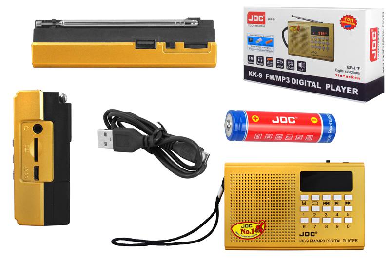 Radio przenośne KK-9 FM,AUX,TF z akumulatorem 18650, złote.