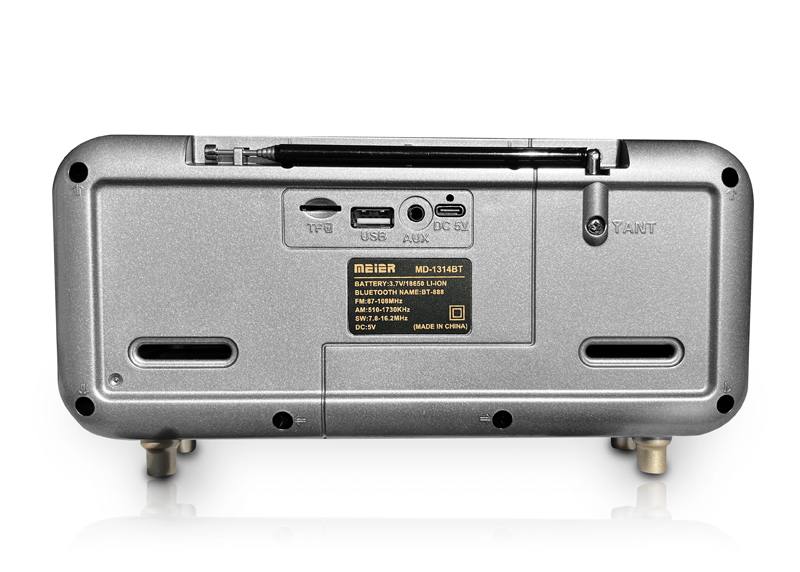 Radio RETRO MD-1314BT bluetooth,USB,TF,AUX,funkcja lampki,płynna regulacja jasności,akumulator,srebrne