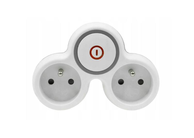 Rozgałęźnik podwójny wtyczkowy z włącznikiem/wyłącznikiem biało-szary