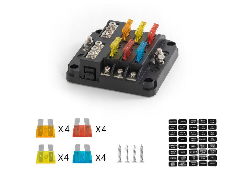 Kompaktowy rozmiar pozwala na instalację w ciasnych przestrzeniach w pobliżu chronionych obciążeń. Może być szeroko stosowany w samochodach, zmodyfikowanych samochodach, autobusach, ciężarówkach, kamperach, wózkach golfowych, motocyklach, statkach, łodziach itp.6-obwodowa skrzynka bezpieczników 12V, 6-obwodowa z ujemną magistralą, wodoodporna skrzynka bezpieczników ze wskaźnikiem LED do wózków golfowych 12V/24V, samochodów ciężarowych, łodzi, samochodów kempingowych i pojazdów dostawczych.
