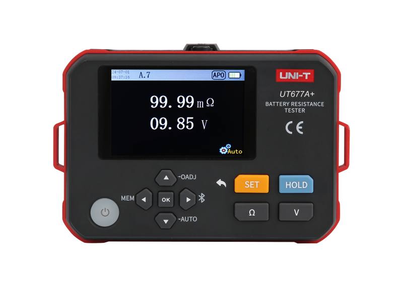 UT677A+ – zaawansowany tester rezystancji wewnętrznej i napięcia baterii to precyzyjne narzędzie diagnostyczne, które umożliwia szybki i dokładny pomiar rezystancji wewnętrznej oraz napięcia w szerokim zakresie (0.000m?–3?, 0.000V–71.00V). Urządzenie obsługuje różne typy baterii, w tym litowe oraz kwasowo-ołowiowe, wykorzystując test 4-terminalowy AC 1kHz, co minimalizuje wpływ rezystancji przewodów na wynik pomiaru.Dzięki kolorowemu ekranowi 3,5” (480×320), wyniki są czytelne, a automatyczna funkcja PASS, WARNING, FAIL pozwala na szybkie ocenienie stanu badanej baterii. Tester posiada pamięć na 500 zestawów pomiarów, a dzięki interfejsowi USB-C oraz komunikacji Bluetooth umożliwia łatwy transfer danych do komputera. Szybki czas reakcji (200ms), odporność na zakłócenia oraz automatyczne dostrojenie częstotliwości (920Hz–1080Hz) gwarantują precyzyjne wyniki w każdych warunkach. Urządzenie działa na akumulatorze litowym 11.1V 2600mAh, co zapewnia długi czas pracy, a funkcja automatycznego wyłączania zwiększa energooszczędność. Solidna konstrukcja i odporność na pola magnetyczne (<40A/m) sprawiają, że tester jest niezawodnym narzędziem dla profesjonalistów zajmujących się diagnostyką akumulatorów.Dane techniczne: