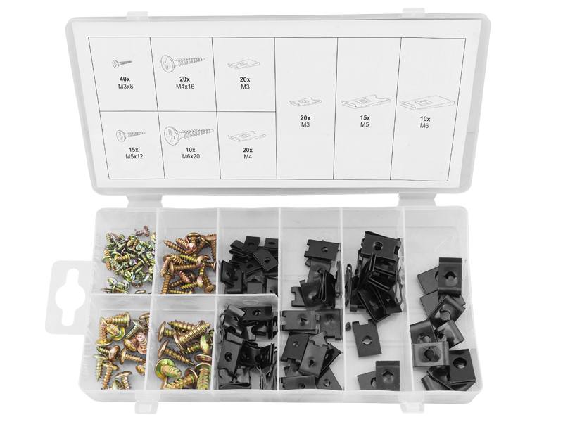 Zestaw wkrętów i podkładek do karoserii. W zestawie wkręty M3, M4, M5, M6 wraz z podkładkami.