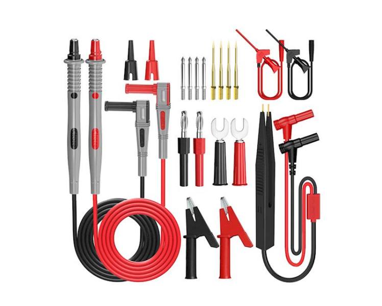 Zestaw przewodów do multimetrów 21w1 CLEQEE P1503E to kompletny zestaw wysokiej jakości narzędzi pomiarowych, które umożliwiają precyzyjne i niezawodne pomiary w elektronice i elektryce.Ten wszechstronny zestaw zawiera przewody pomiarowe, sondy, wtyczki i zaciski, które są niezbędne dla profesjonalistów i pasjonatów elektroniki.